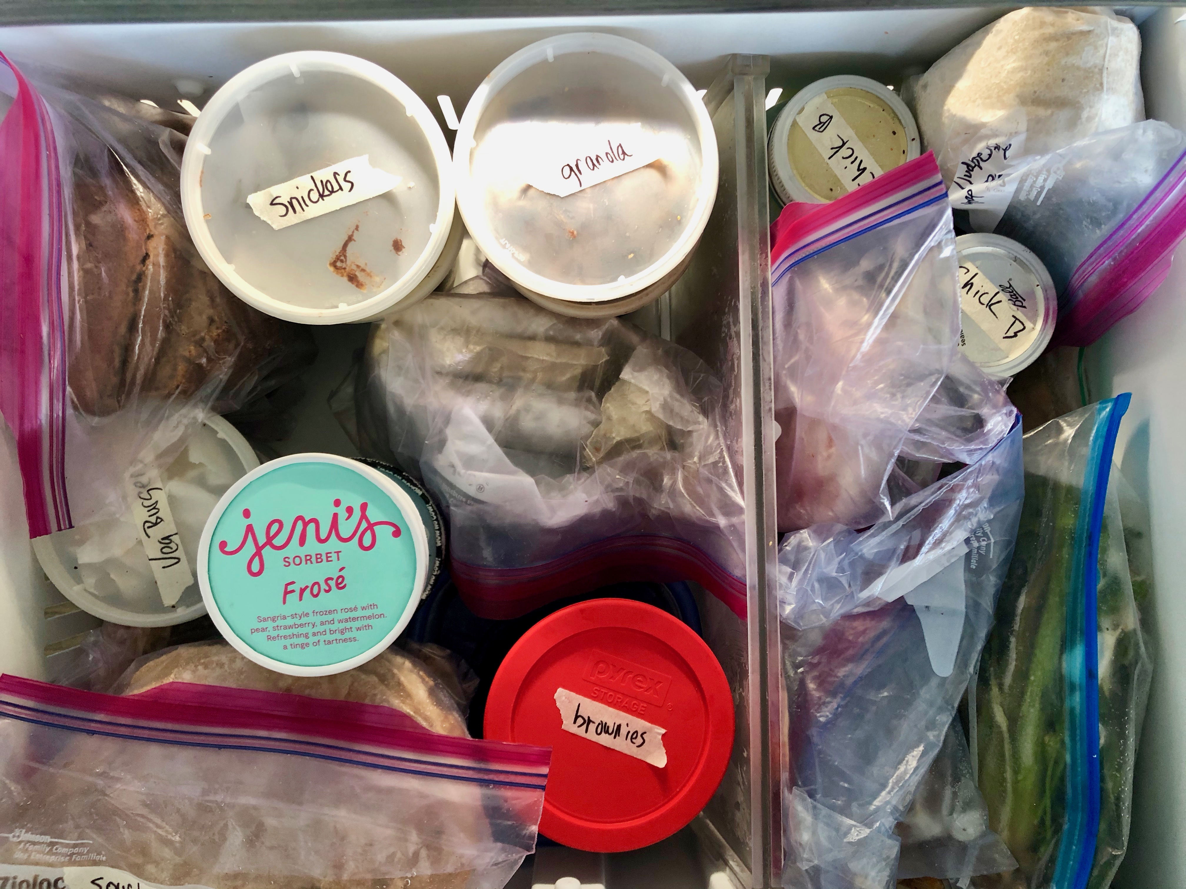 With a little extra time on my hands this summer, I’ve reorganized the junk drawer, the spice drawer and even a few office drawers, but I what I haven’t wanted to touch are the two freezer drawers that hold a mix of raw ingredients—hello, smoothies—a lot of baked goods, plus a few mysteries. Our daughter, who is a vegetarian and a talented baker, and I are great at adding food, but no one actually goes into the freezer and figures out what’s in the tupperware container and eats it. (Except for the stash of brownies! We all know where those are.)