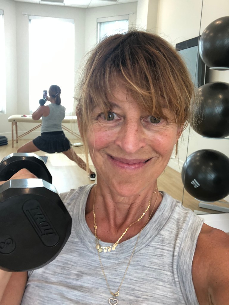 Before the pandemic, my workout routine did involve weights. I worked out twice a week at Sweat (conveniently located on my block), which specializes in High Intensity Interval Training (HIIT) workouts. Each day’s workout is different, but all combine cardio and weight exercises and all of them (as promised) are intense! When gyms closed in March, my husband and I bought a Peloton, and I shifted to all cardio, all the time. I did up my yoga, but that was mostly for the mental health benefits—at my level, it’s just not that strenuous—so I was ready to get back to some weights.