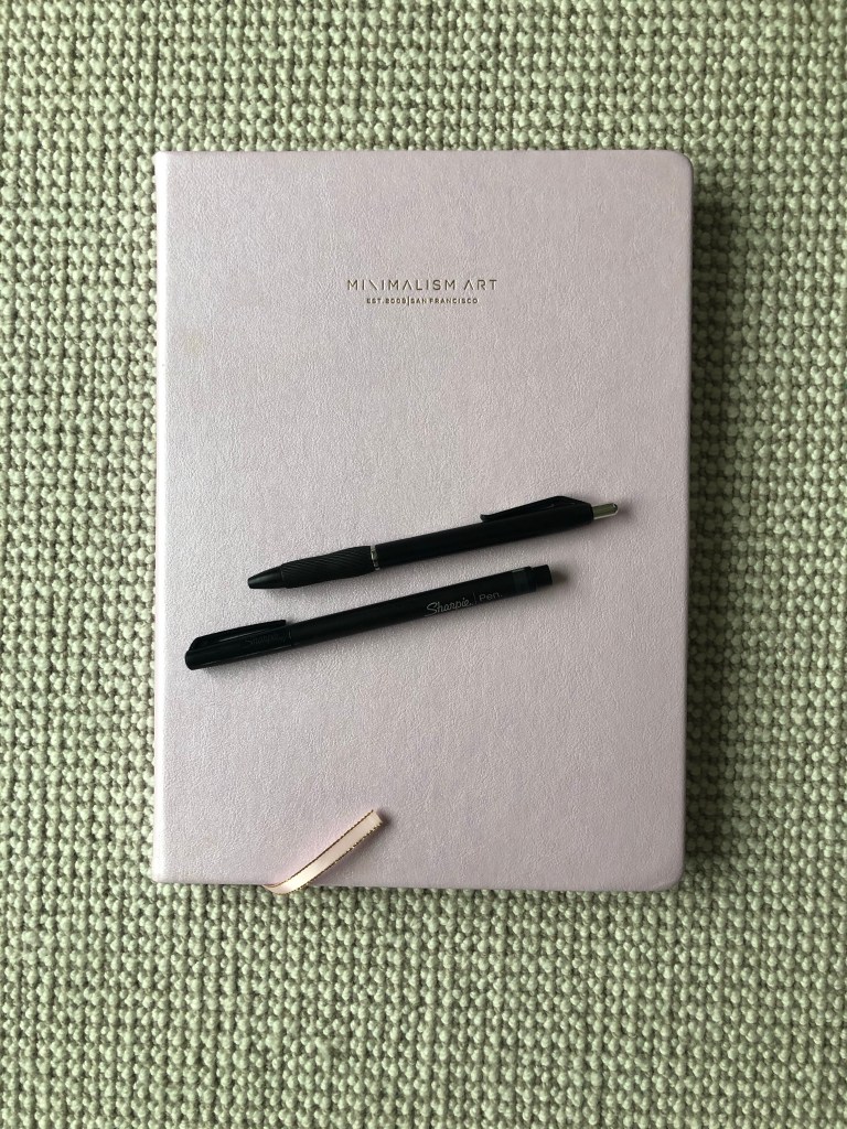 Find a notebook and pen you LOVE. Writing is a physical act and very tactile. You deserve the paper and instrument that makes you feel inspired. I can’t write with a scratchy pen or in a tiny notebook. I need room! My picks right now are an oversize Minimalism Art XL Journal and Sharpie writing pens. But you might want a smaller journal to toss in your backpack and colorful markers.