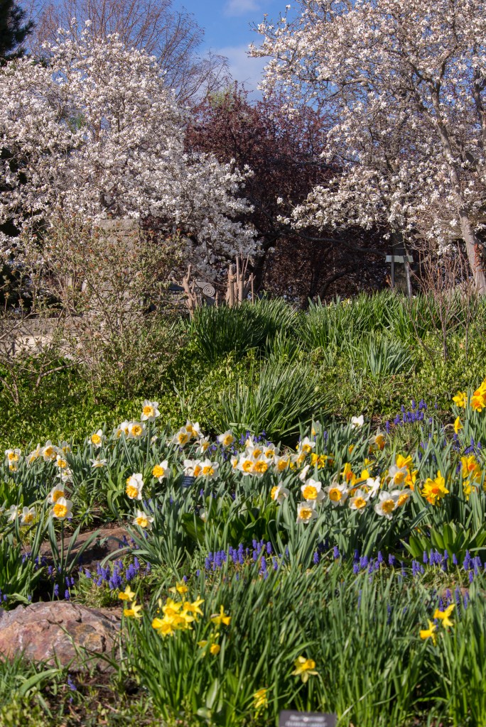 When I lived on Chicago’s North Shore, my go-to mood elevator was a walk through the Chicago Botanic Garden. This winter, my husband and I were desperate enough to see friends that we bundled up and met them for a wintery walk through the garden’s snowy evergreens. But now that trees are starting to bud and daffodils are poking up, we’ll soon have a riot of color to punctuate outdoor walks.