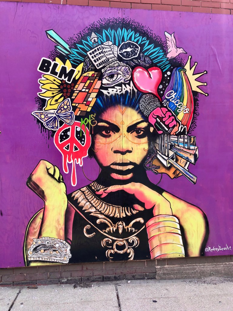 One of the things I found most exciting about Uptown is its street art. It’s everywhere—from the Clifton Avenue Street Art Gallery to corner murals and colorful storefronts . My Streeterville neighborhood literally pales by comparison. The advocacy and ethnic diversity of the area is embedded in the art and well as a sense of history and celebration. And even though things are getting safer, what better way to take in art than al fresco?
