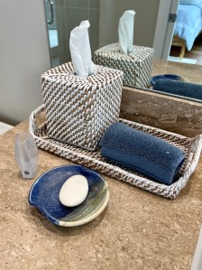 Bar soap. I prefer liquid hand soap and body wash, but my friend Elaine doesn’t feel right about using either to wash her face. A Dove beauty bar was an easy amenity to add to the bathroom.