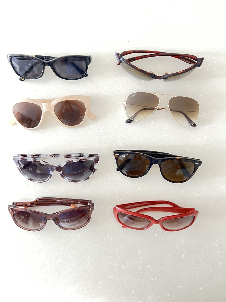 How many pairs of sunglasses do you have? If you’re like me, you own oodles, but probably only wear one or two. But we shouldn’t let our collection of sunnies languish in some dark drawer. We need to make the most of our bright days and fun accessories while summer is still here. For this easy, no-cost style challenge, the assignment is to round up every pair of sunglasses you own—whether they’re from a designer or a drug store—try them on and start wearing them. I share tips for evaluating what stays and goes below. The process is fun, eco-friendly and fashionable. I found sunglasses I’d long forgotten, including a handy pair of tinted readers. I’m definitely gonna make full use of my newfound sunglass wardrobe.