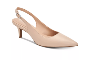 Alfani. For a lower priced comfy pump, Tricia recommends the $70 Alfani Step n’ flex Babbsy slingbacks, created for Macy’s. She owns them in several colors. “I taught in them for over 8 hours one day last week,” she said. I’m sold!