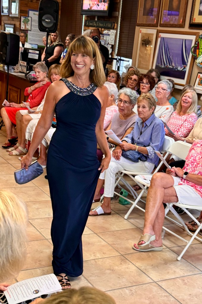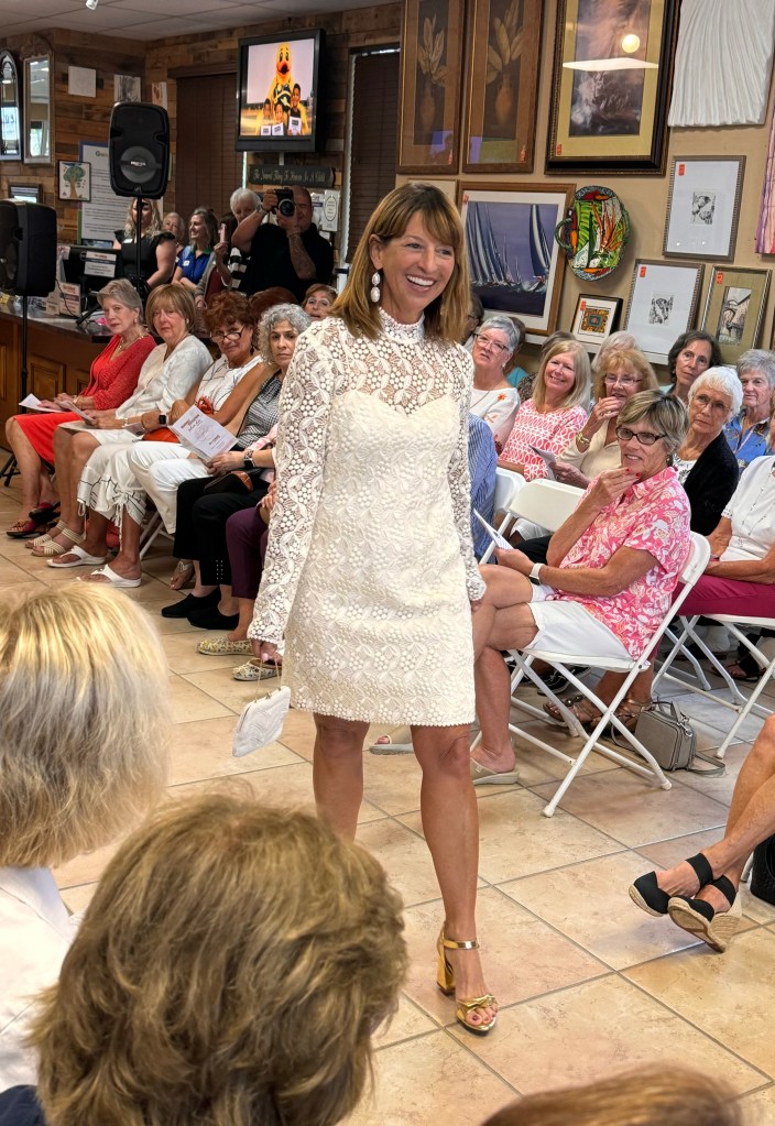 We paraded out together for the finale, then members of the audience were invited to stay to mingle and shop. That’s when things really got lively! Imagine combing through racks of shoes, bags, accessories, sportswear and ballgowns with over a hundred women. I loved it. I would have bought the cream lace dress I wore, but all three of the outfits I modeled were snapped up—which was the point of the show. Happily, the event raised a great deal of money for a really great cause.
