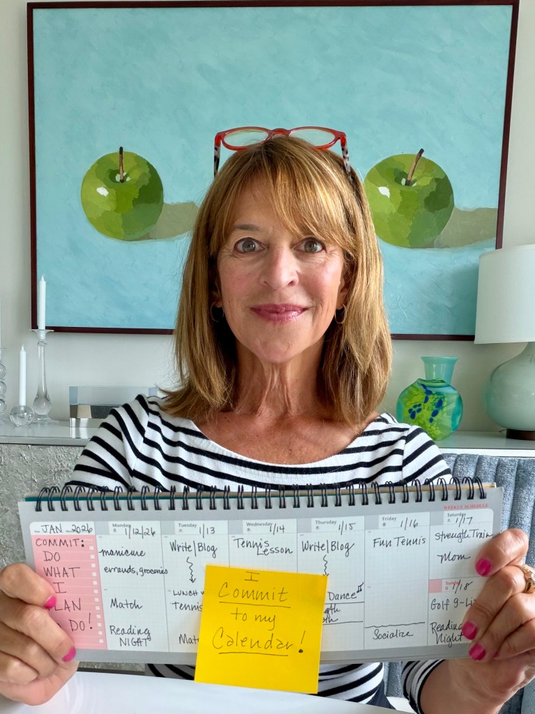 I’ve also scheduled times to strength train, organize my finances, hang out with my mother, line dance (so fun!) and yes, play lots of tennis. My priorities may shift as the year goes on, but the practice of scheduling specific times to work on them is solid. The calendar is the tool, but the magic is that I COMMIT to it. And to myself.