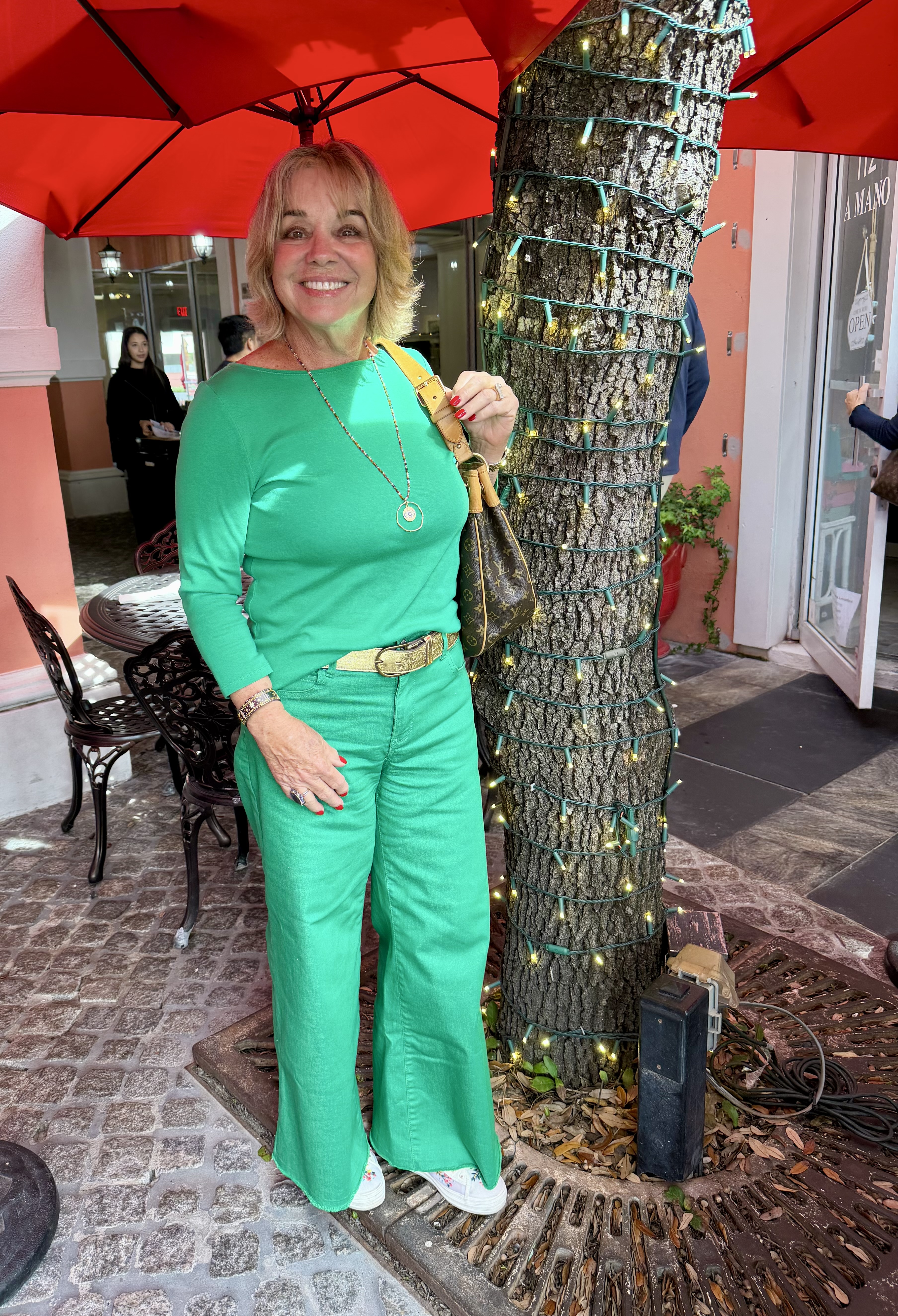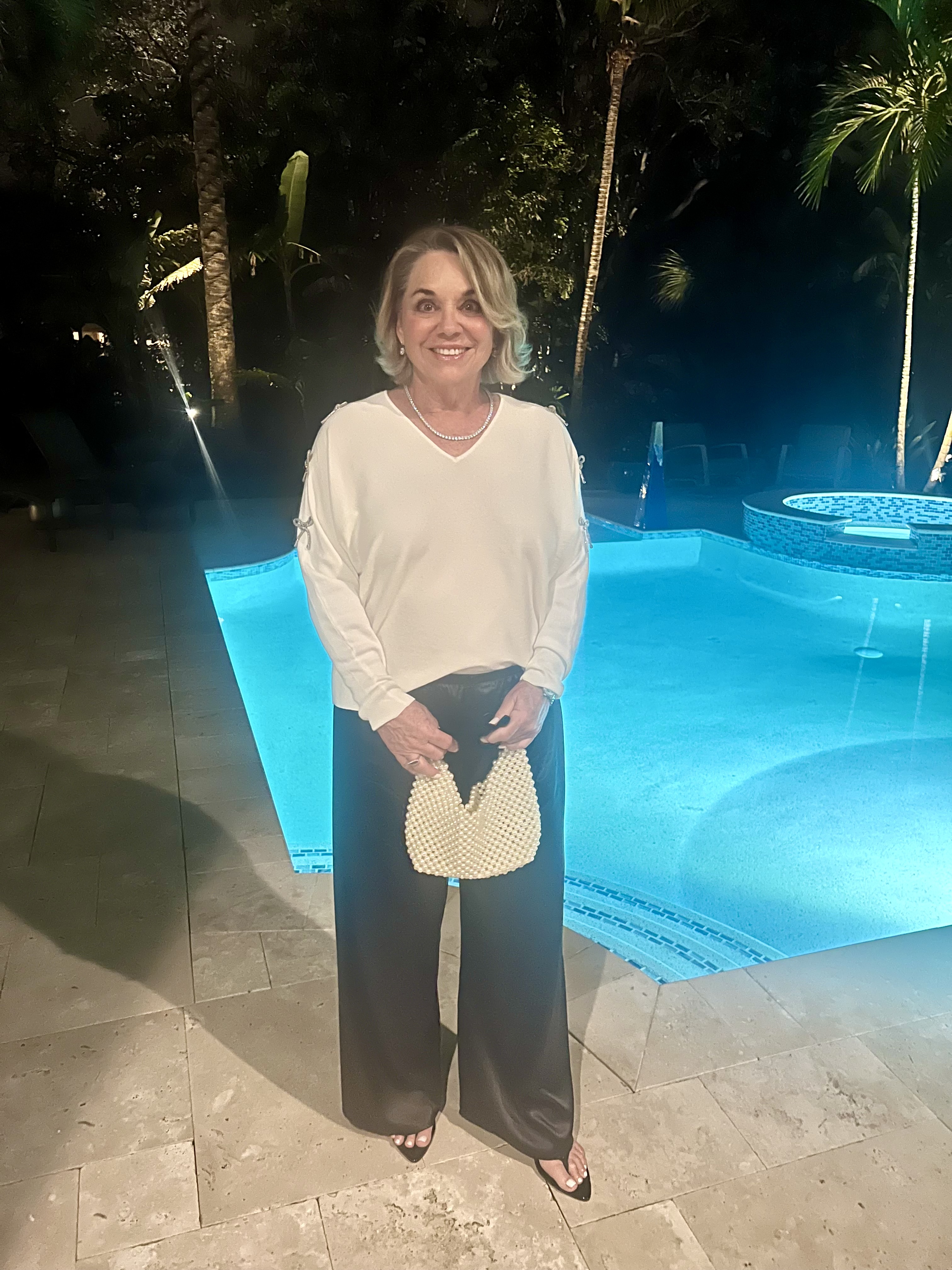 Another Florida friend, Marlene, enjoys getting dressed up regardless of where she’s going. “I actually get dressed up for most occasions,” she says, “from tennis to an elegant dinner out and everything in between, including doctors’ appointments. I’m usually always thinking about what I’m planning on wearing.” I call Marlene my “style and aging role model” because at 77, she always looks amazing and exudes positivity, as you can see.